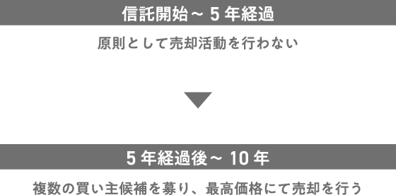 本信託不動産の売却は、原則として下記方針に沿って行われる予定であり、本信託受益権は当該売却をもって終了する予定です。