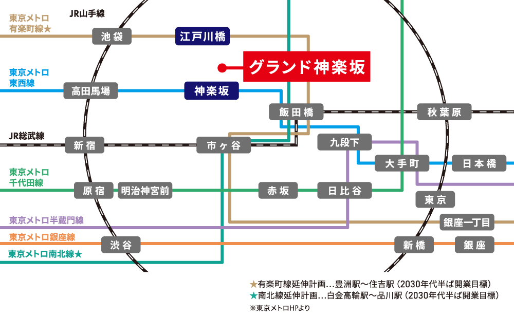 物件からは神楽坂駅、江戸川橋駅と2駅が徒歩5分圏内と利便性に優れています。