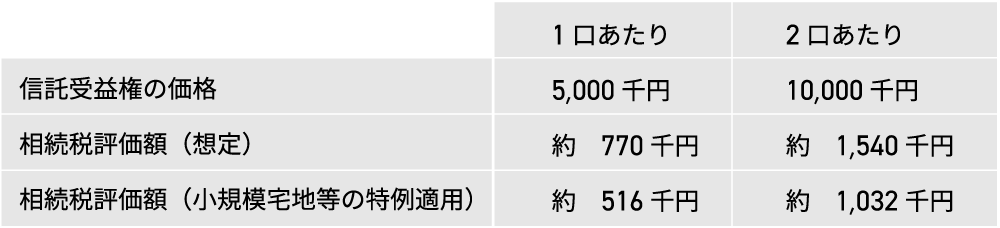 ③相続・贈与時における本信託受益権の評価額は、原則として信託財産の評価額とされ、信託受益権の保有個数割合に応じて評価されます。